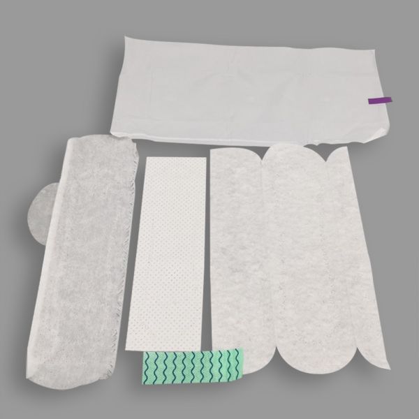 | Material Details | Dry topsheet, USA fluff pulp, Sumitomo SAP, Breathable PE film backsheet with colorful logo printed, printed release paper, individual wrap, colorful packing bag, with mint essence, winged |